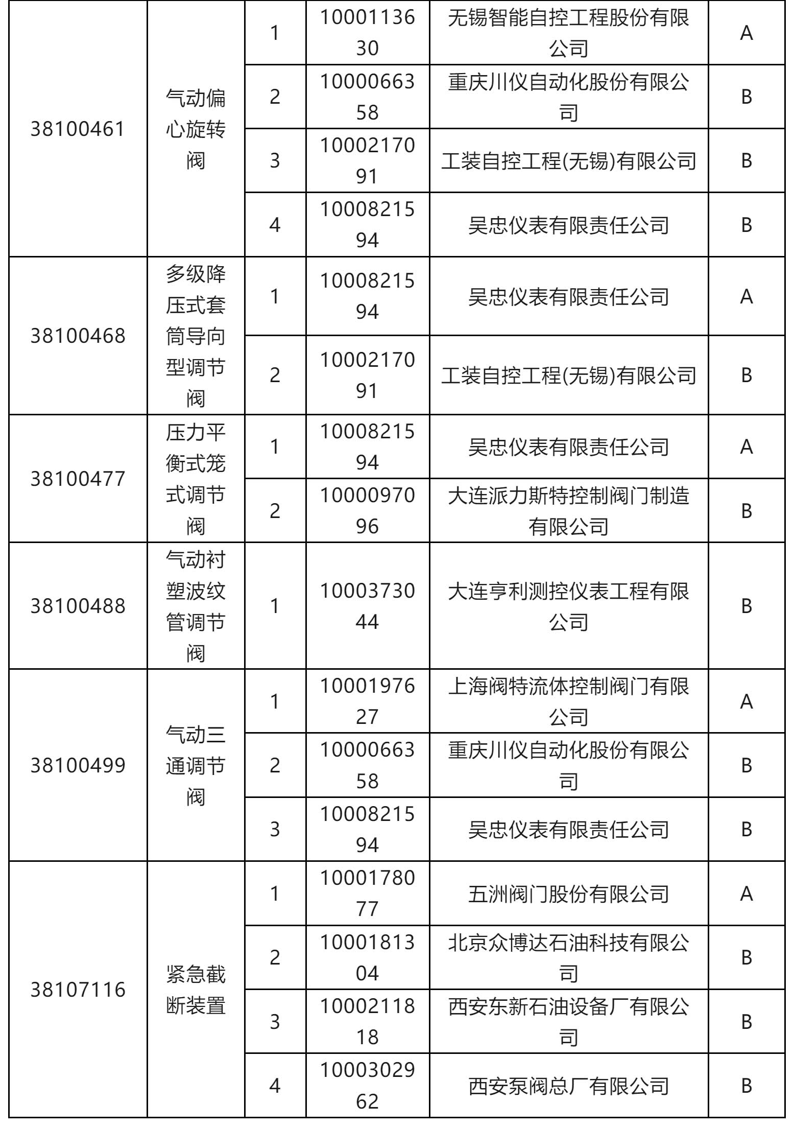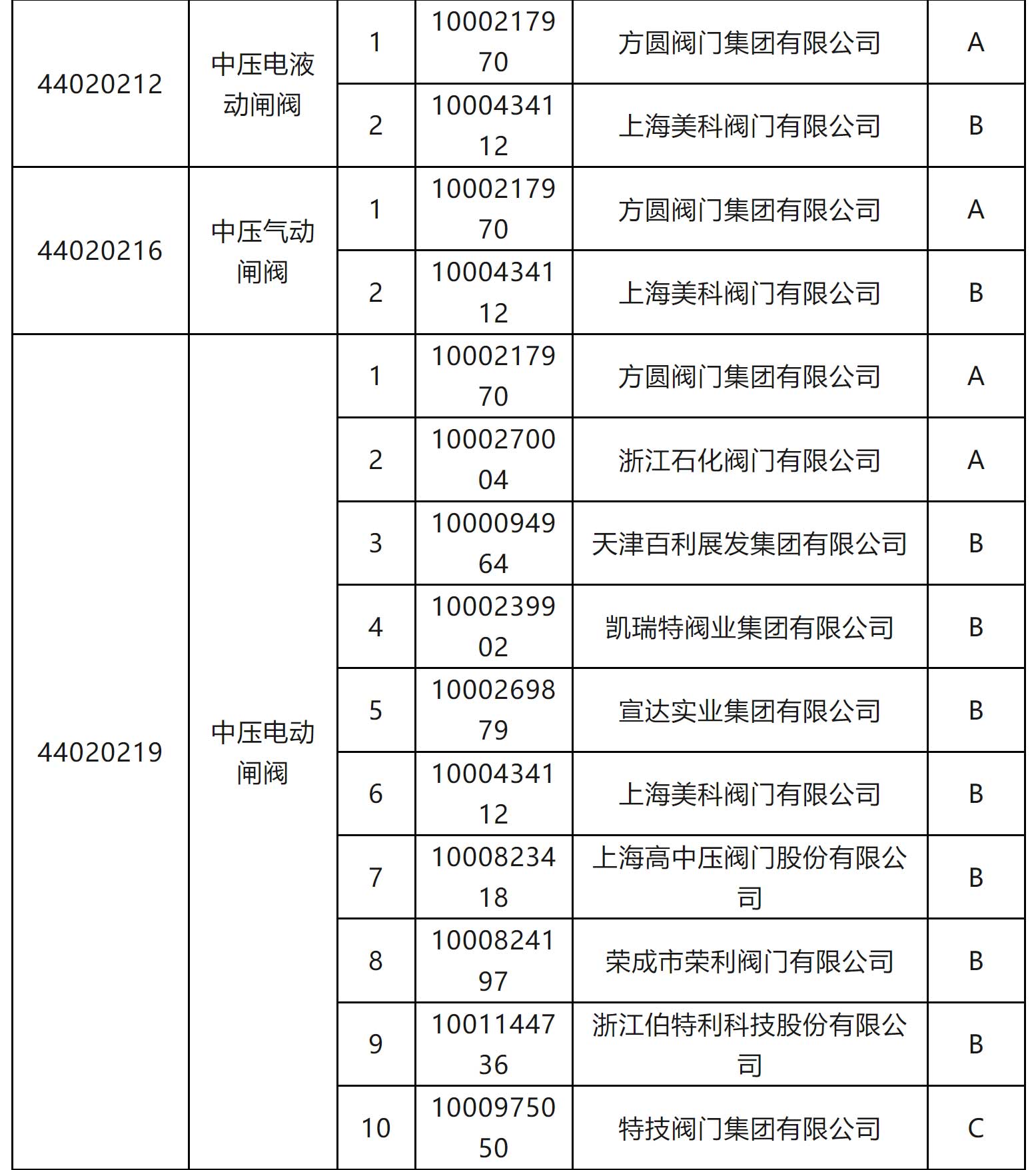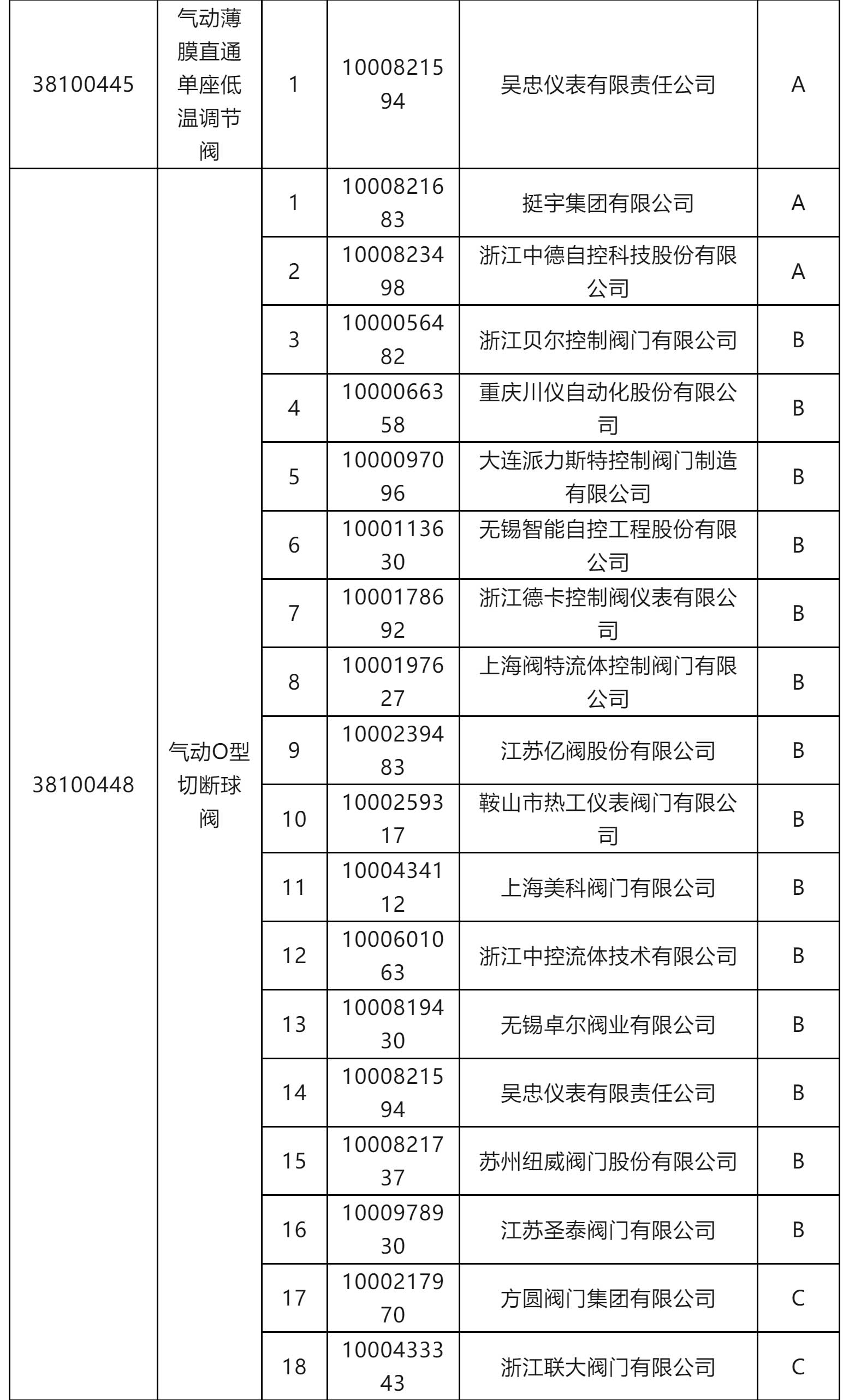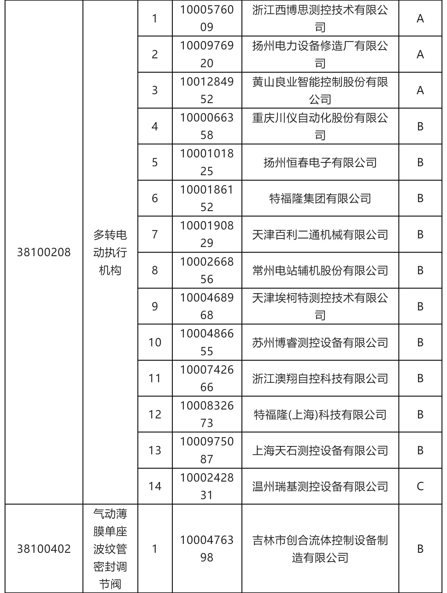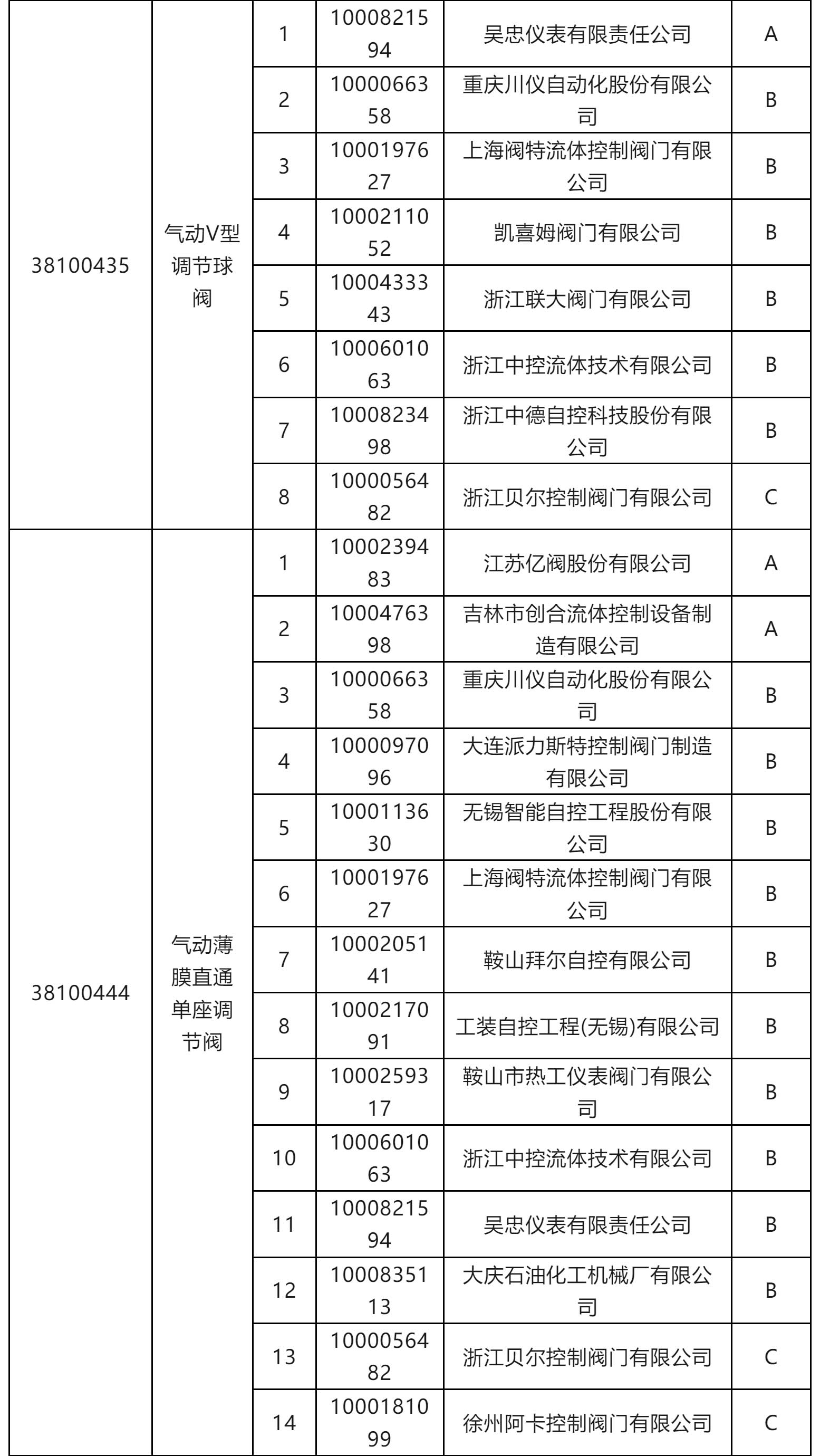 一級物資供應(yīng)商考核評價結(jié)果(執(zhí)行機構(gòu)類和閥門類)