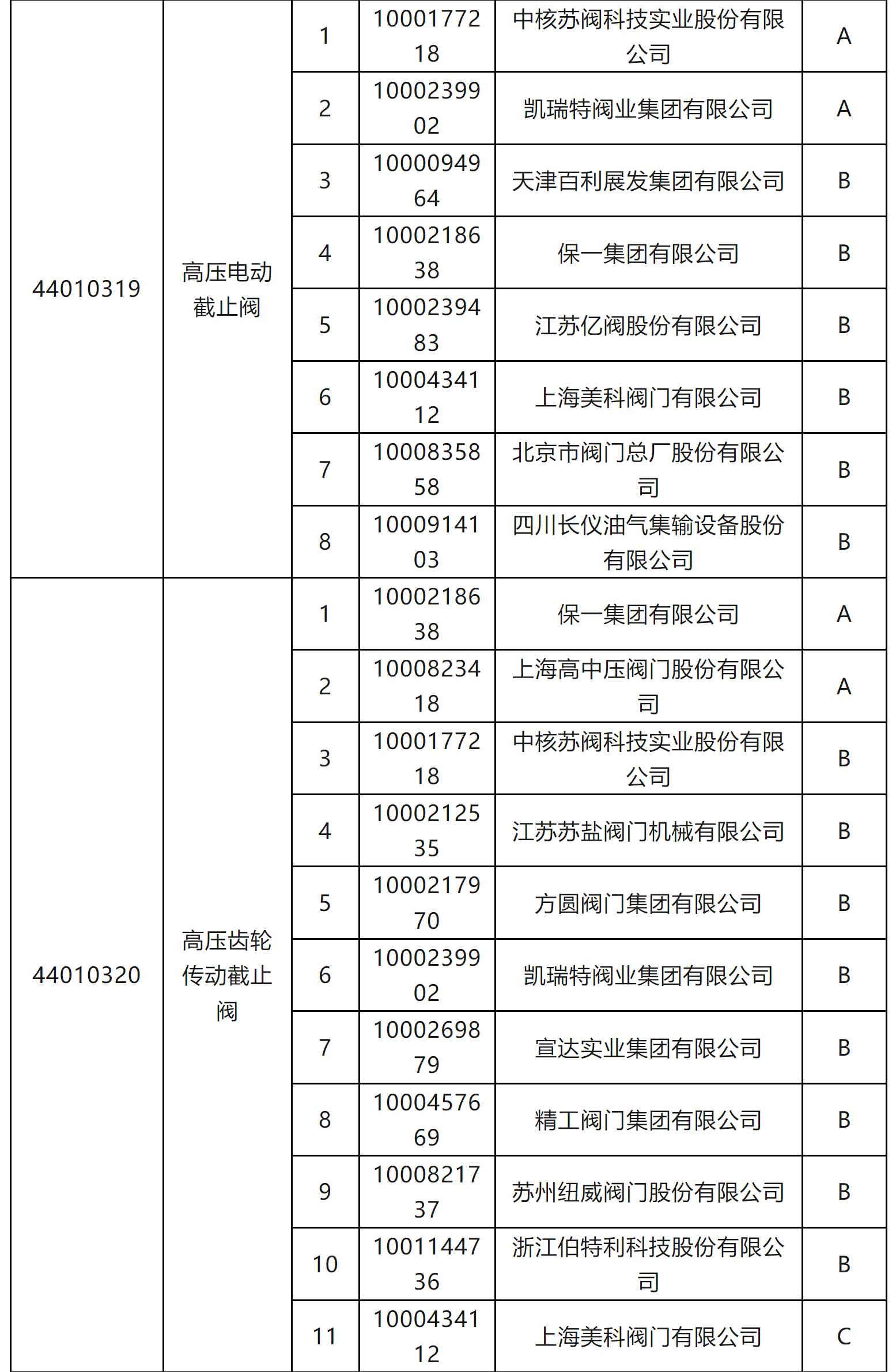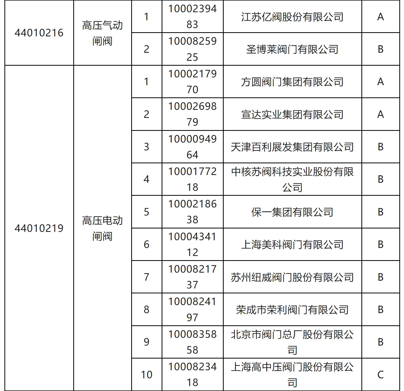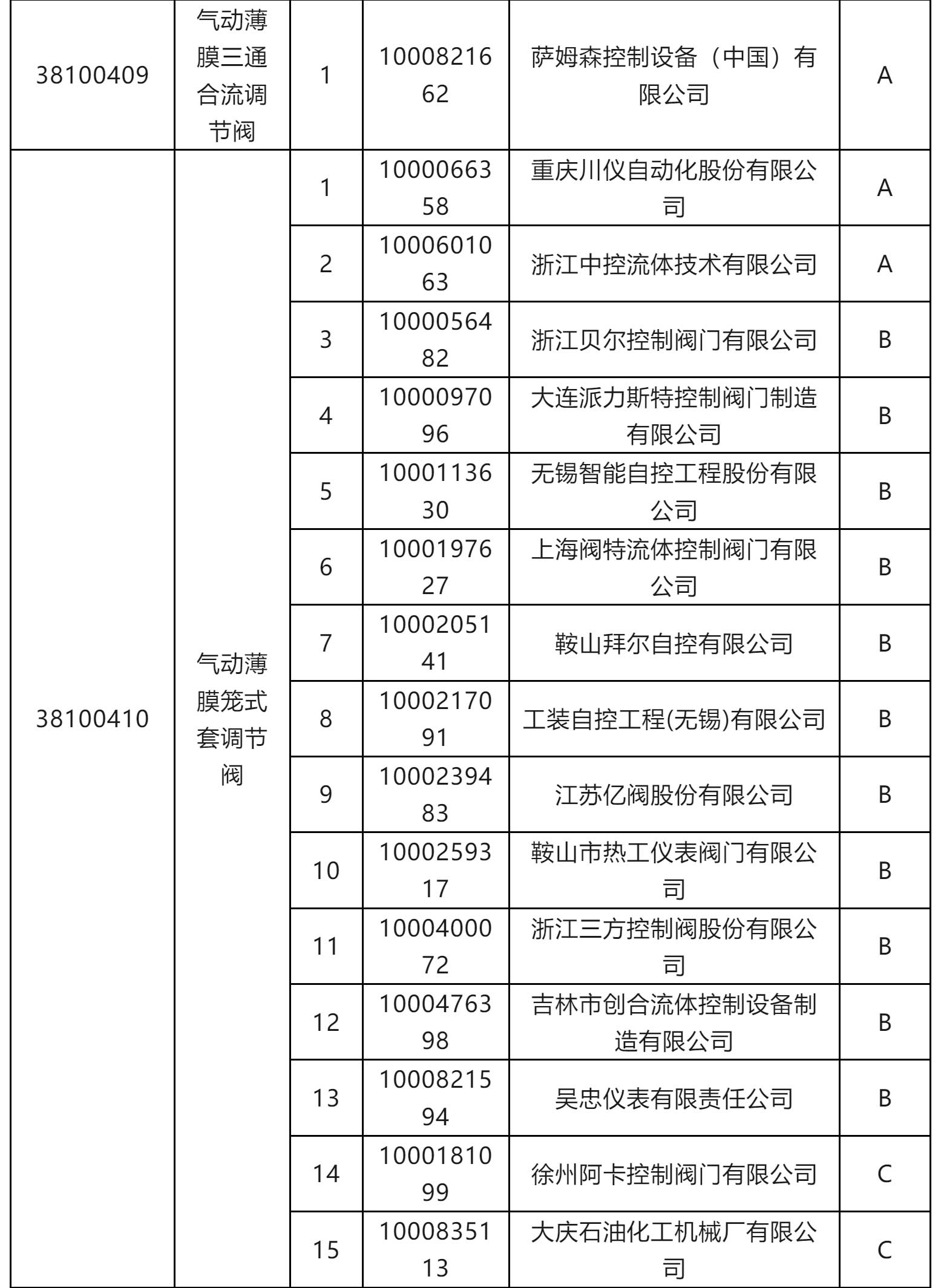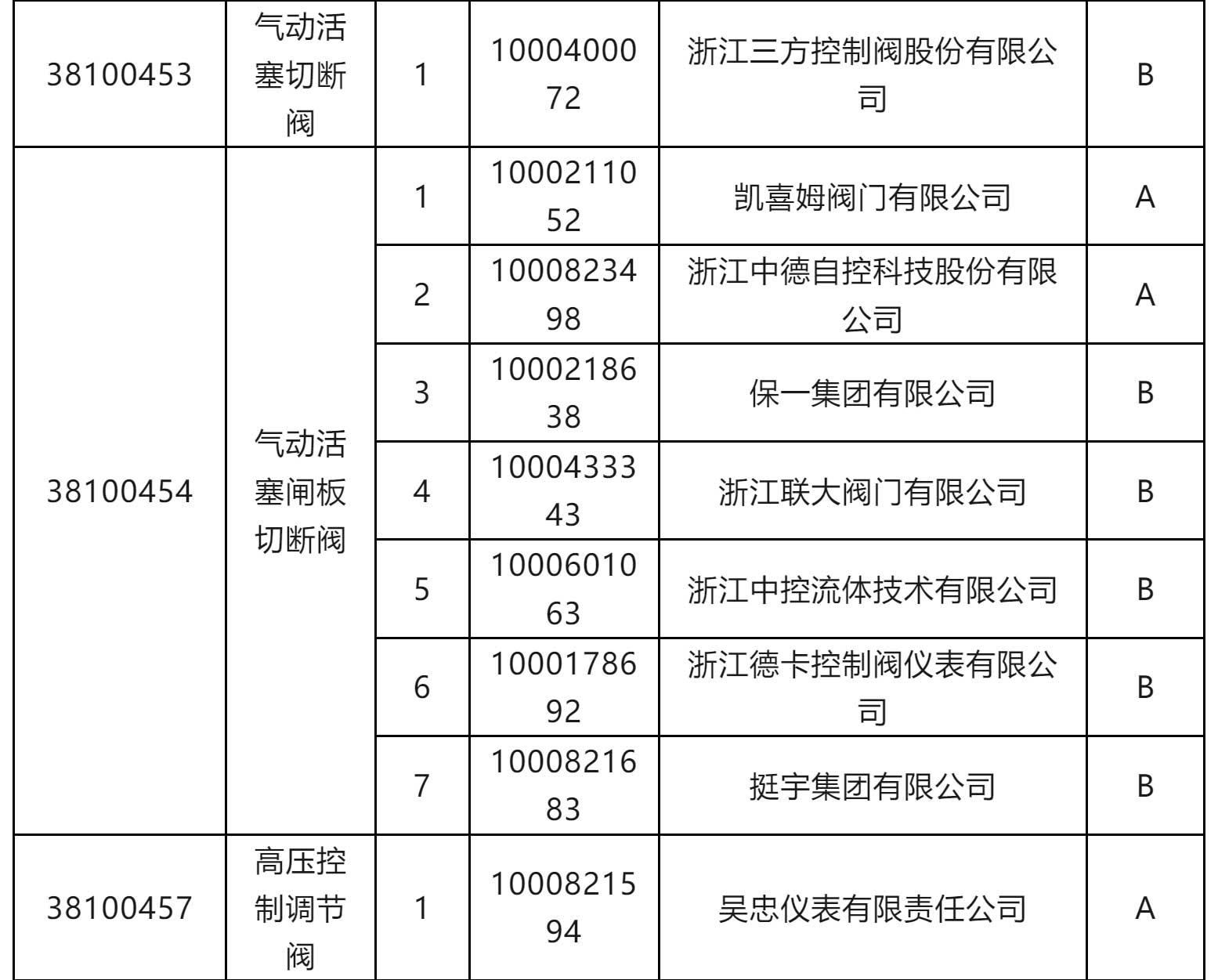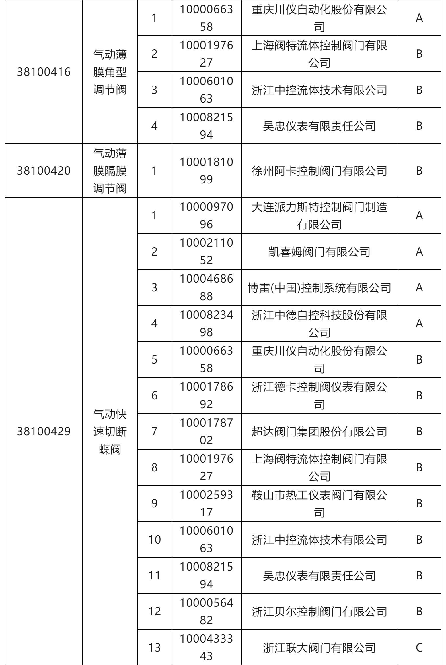 一級物資供應(yīng)商考核評價結(jié)果(執(zhí)行機構(gòu)類和閥門類)