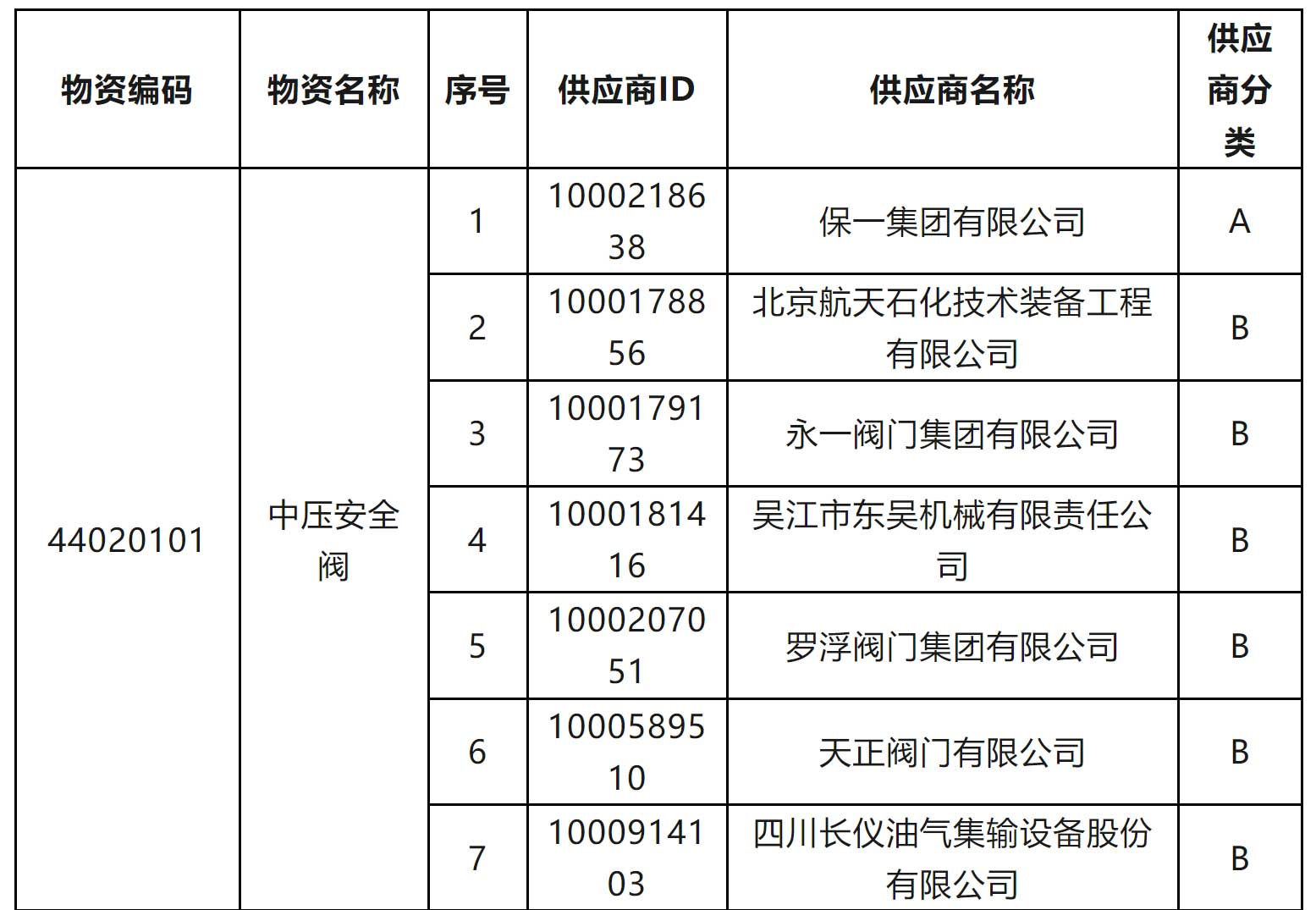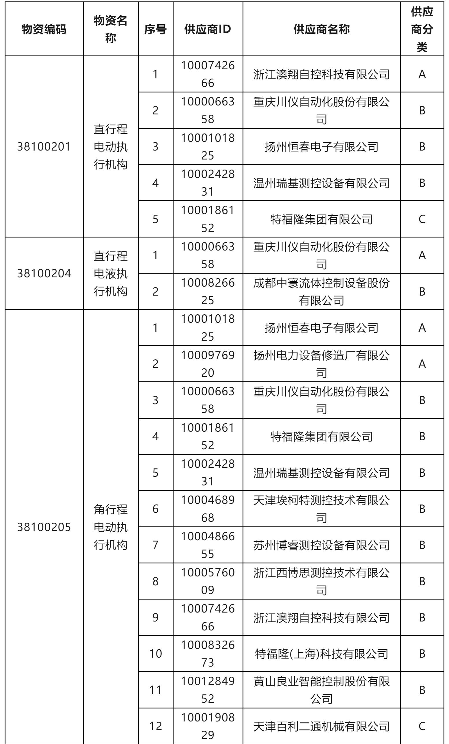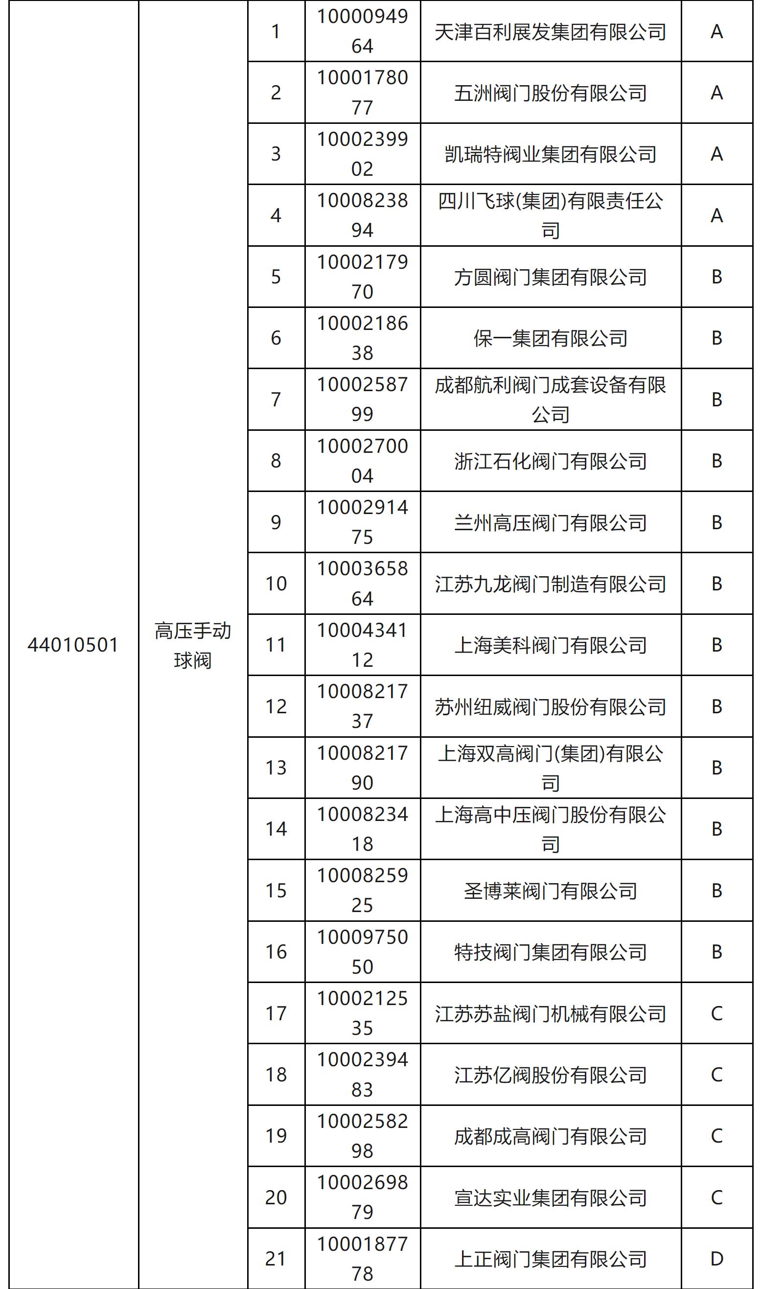 一級物資供應(yīng)商考核評價D類供應(yīng)商名單