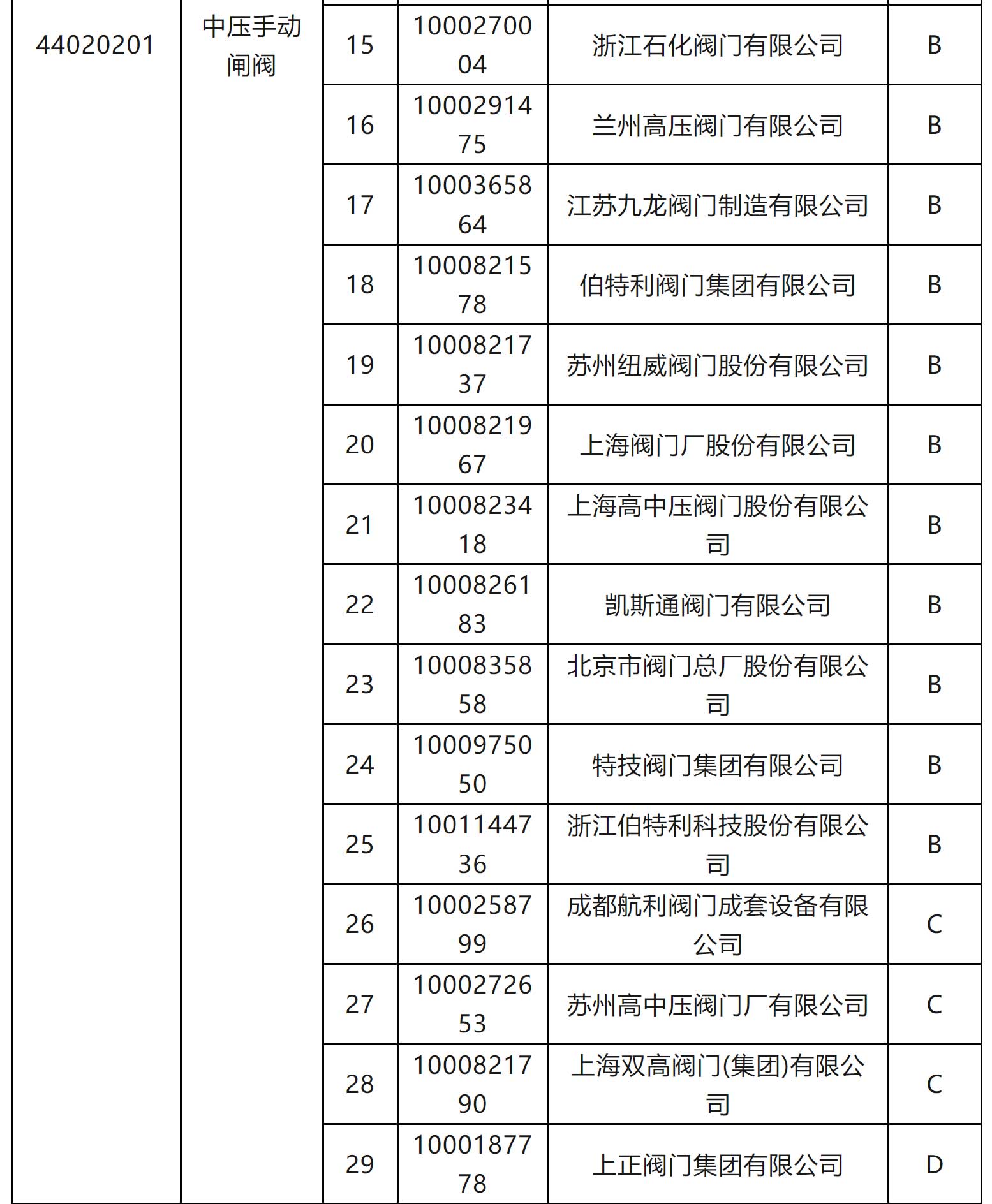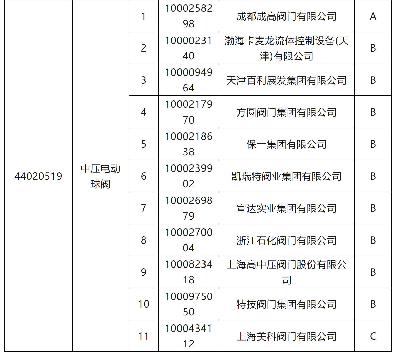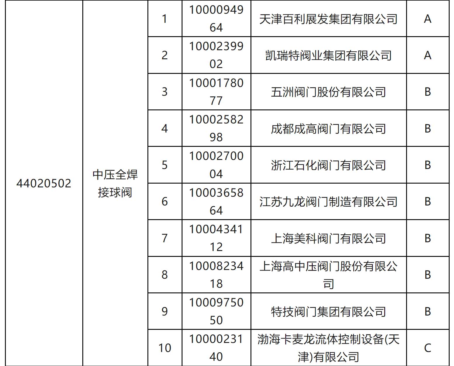 一級物資供應(yīng)商考核評價D類供應(yīng)商名單